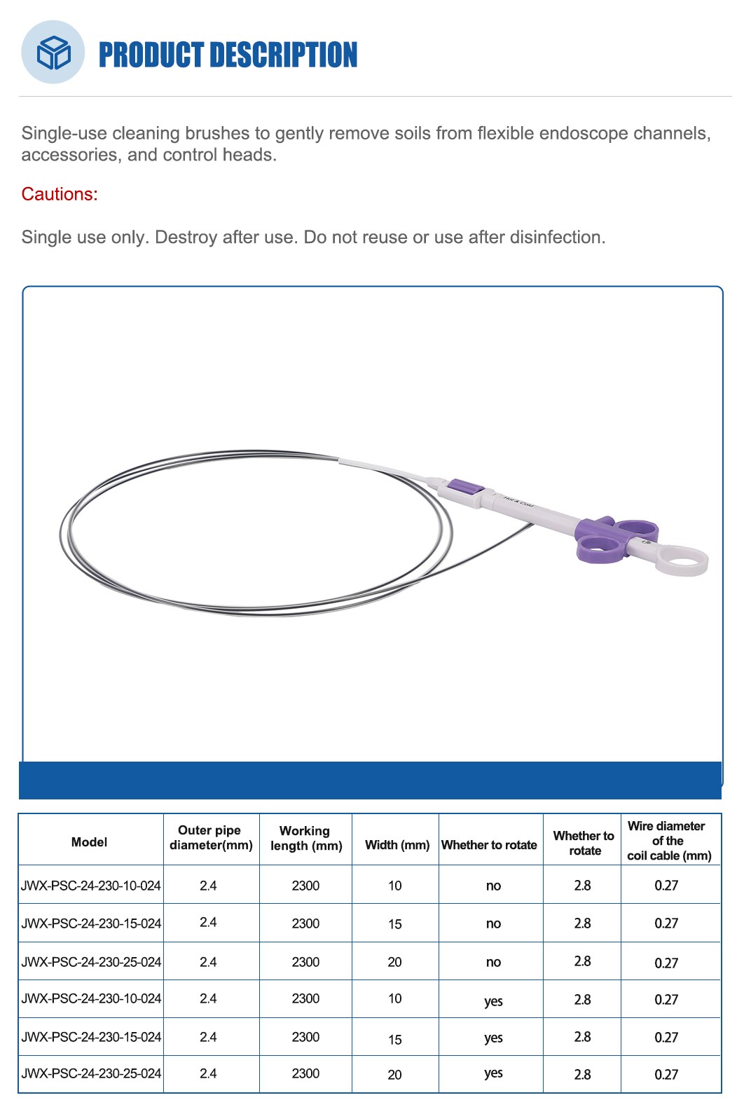 OEM Disposable Scope Channel Cleaning Brushes with Handle JWX-PSC-24-230-15-024